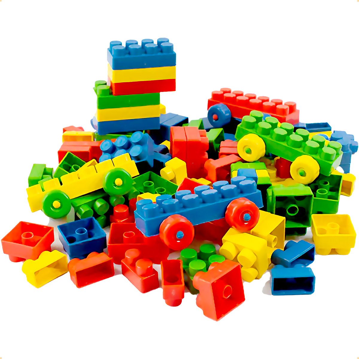 Estimule a imaginação e o desenvolvimento dos pequenos com os blocos de montar! Com 108 peças coloridas e vibrantes (vermelho, amarelo, azul e verde), esse brinquedo incentiva a coordenação motora, o raciocínio lógico e a criatividade. Os blocos vêm em diferentes formatos, incluindo rodinhas, para criar diversas montagens incríveis!
