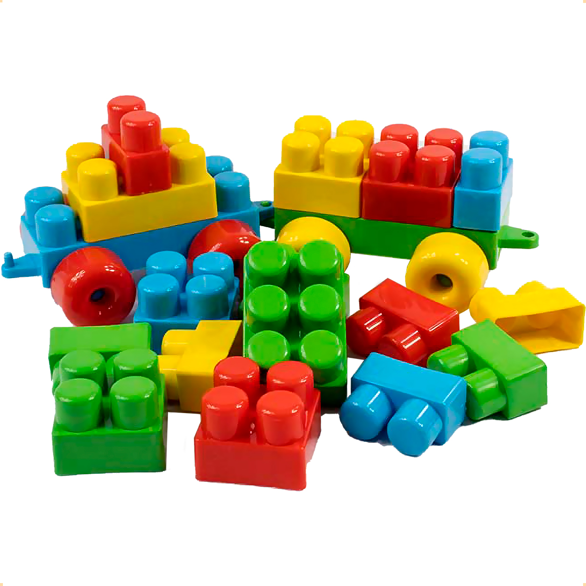 Estimule a imaginação e o desenvolvimento dos pequenos com os blocos de montar! Com 26 peças coloridas e vibrantes (vermelho, amarelo, azul e verde), esse brinquedo incentiva a coordenação motora, o raciocínio lógico e a criatividade. Os blocos vêm em diferentes formatos, incluindo rodinhas, para criar diversas montagens incríveis!